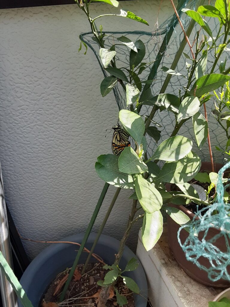 真ん中に写っているのは、今朝羽化したアゲハ蝶。
